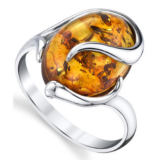Oliveti Sterling Silver Baltic Amber Ring With Cognac Color Oval Shape Center Stone