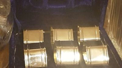 6 Hexagonal Silver Napkin Holders In Blue Velvet Gift Box